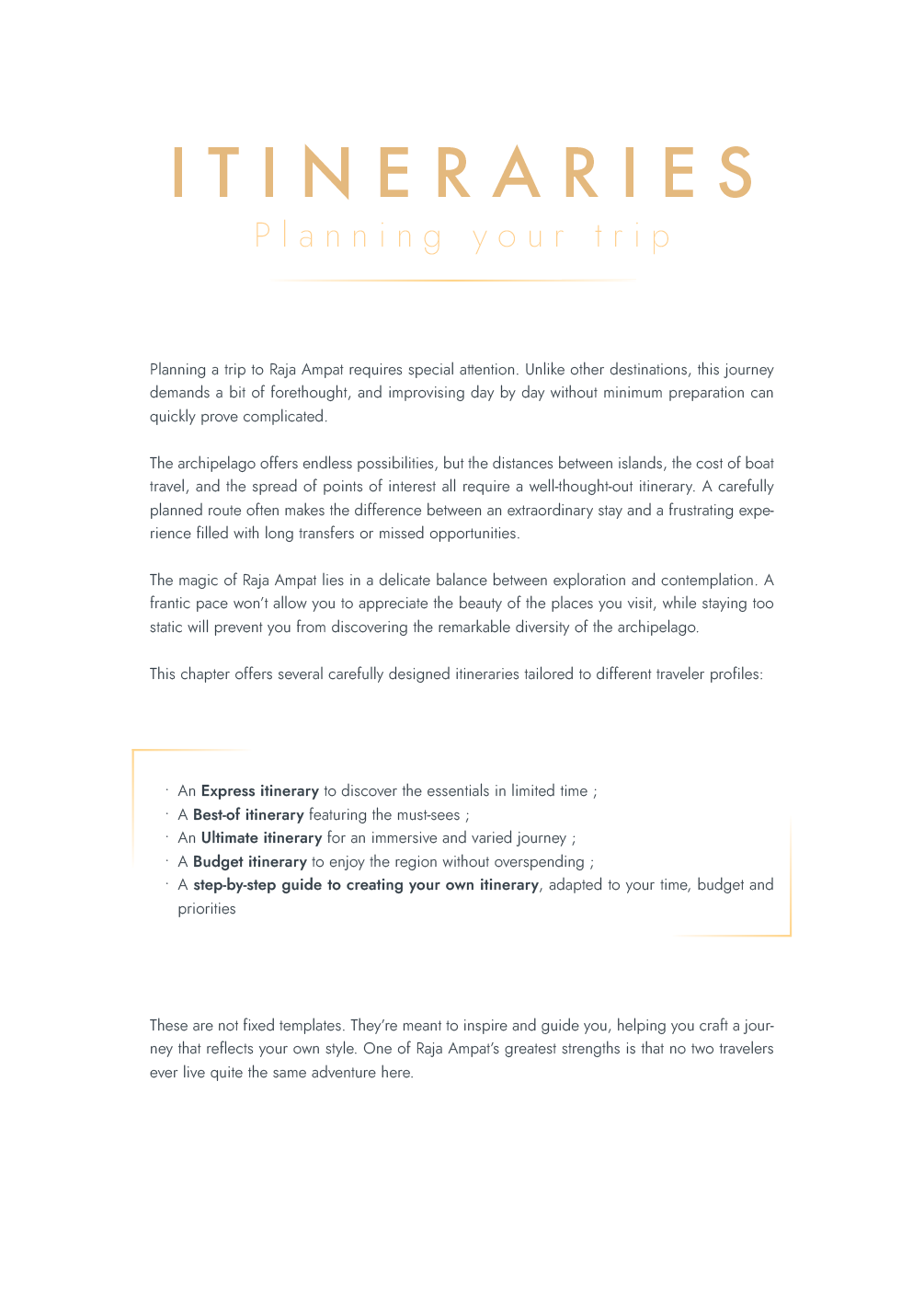 Whether you’re a backpacker, couple, diver, or family, the guide has ready-to-use itineraries and tips adapted to different travel styles and budgets.